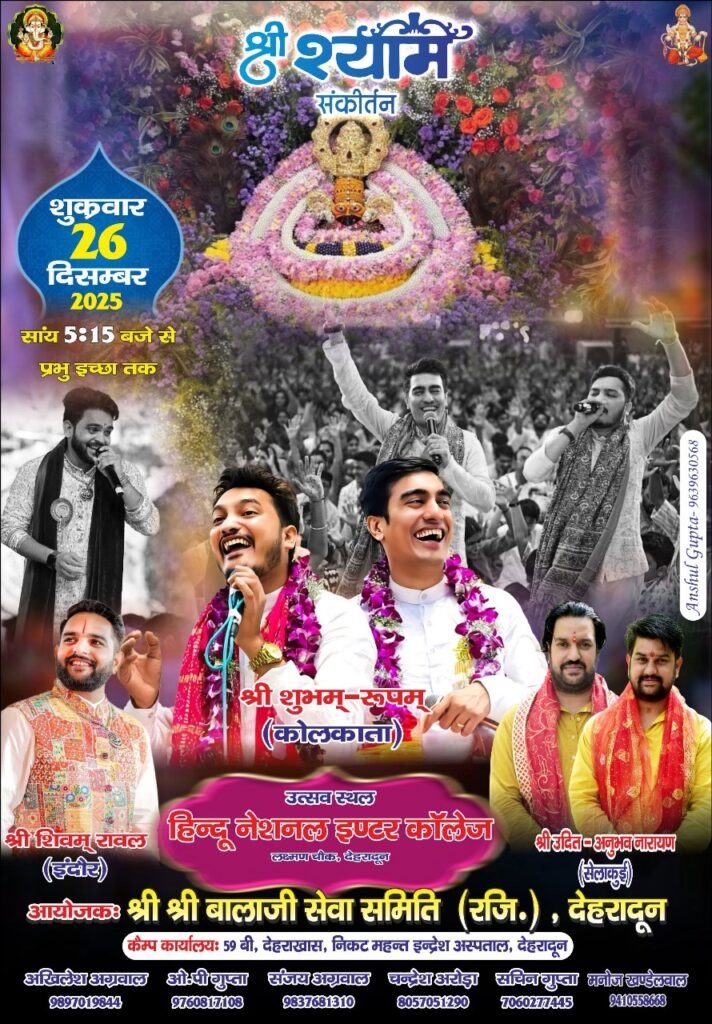 देहरादून में आज होगा भव्य श्री श्याम कीर्तन, युवाओं के जोश से सजेगा भक्तिमय माहौल">